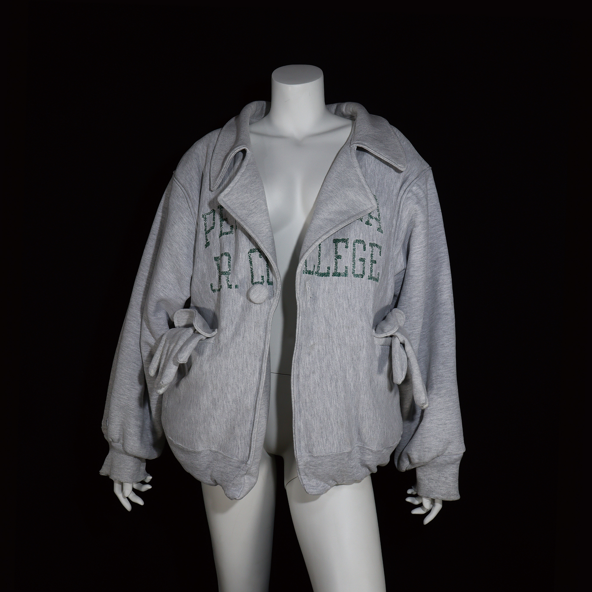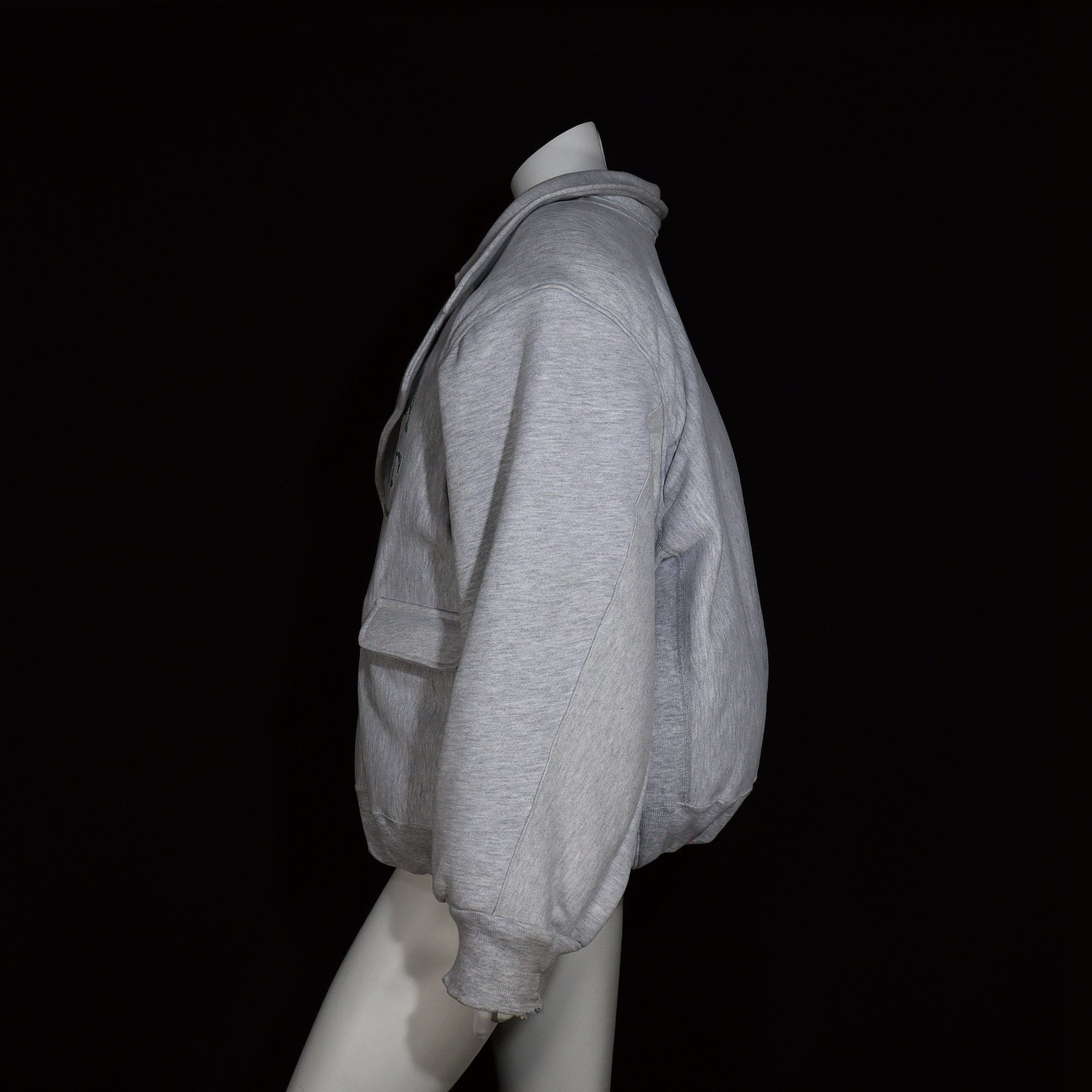 An original 1980s Reverse Weave sweatshirt has been deconstructed and rebuilt into a tailored silhouette. Designed with a single front button,